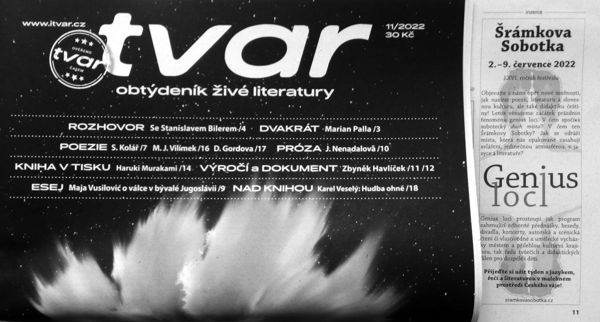 - oznámení v časopisu Tvar, 26. května 2022, č. 11