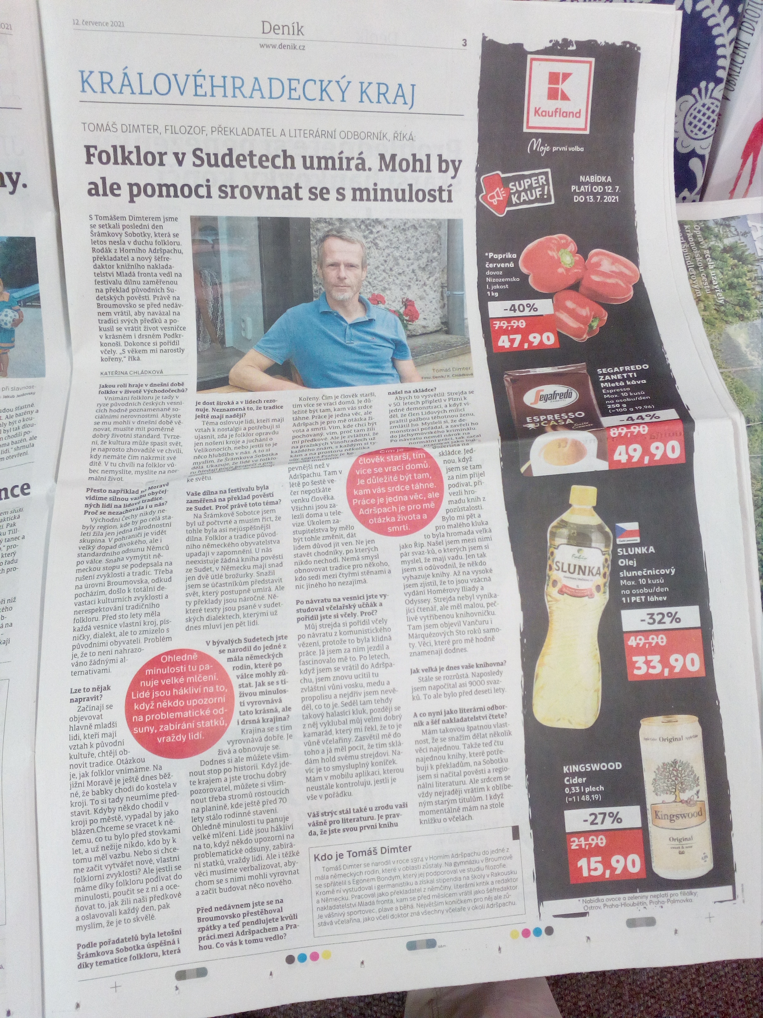- rozhovor v Hradeckém deníku s T. Dimterem, 12. 7. 2021