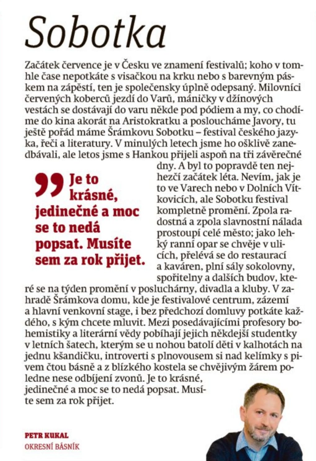 - sloupek Sobotka, deník Metro, 15. července 2024, s. 20, autor Petr Kukal